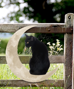 Black Cat Moon Hanging Metal Sign QNK879MS