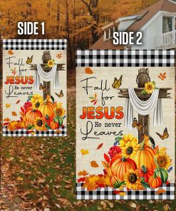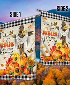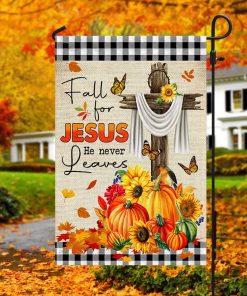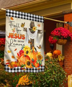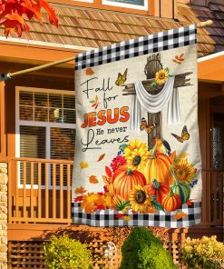 Fall Flag Fall For Jesus He Never Leaves Halloween Thanksgiving Flag MLN445F