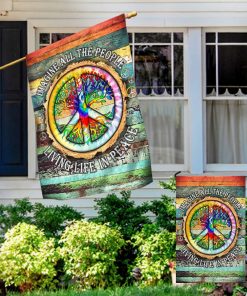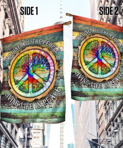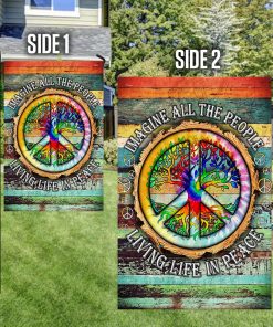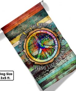 Peace Sign Hippie Flag Imagine All The People Living Life In Peace Flag TPT597F