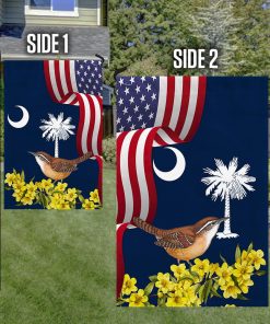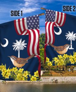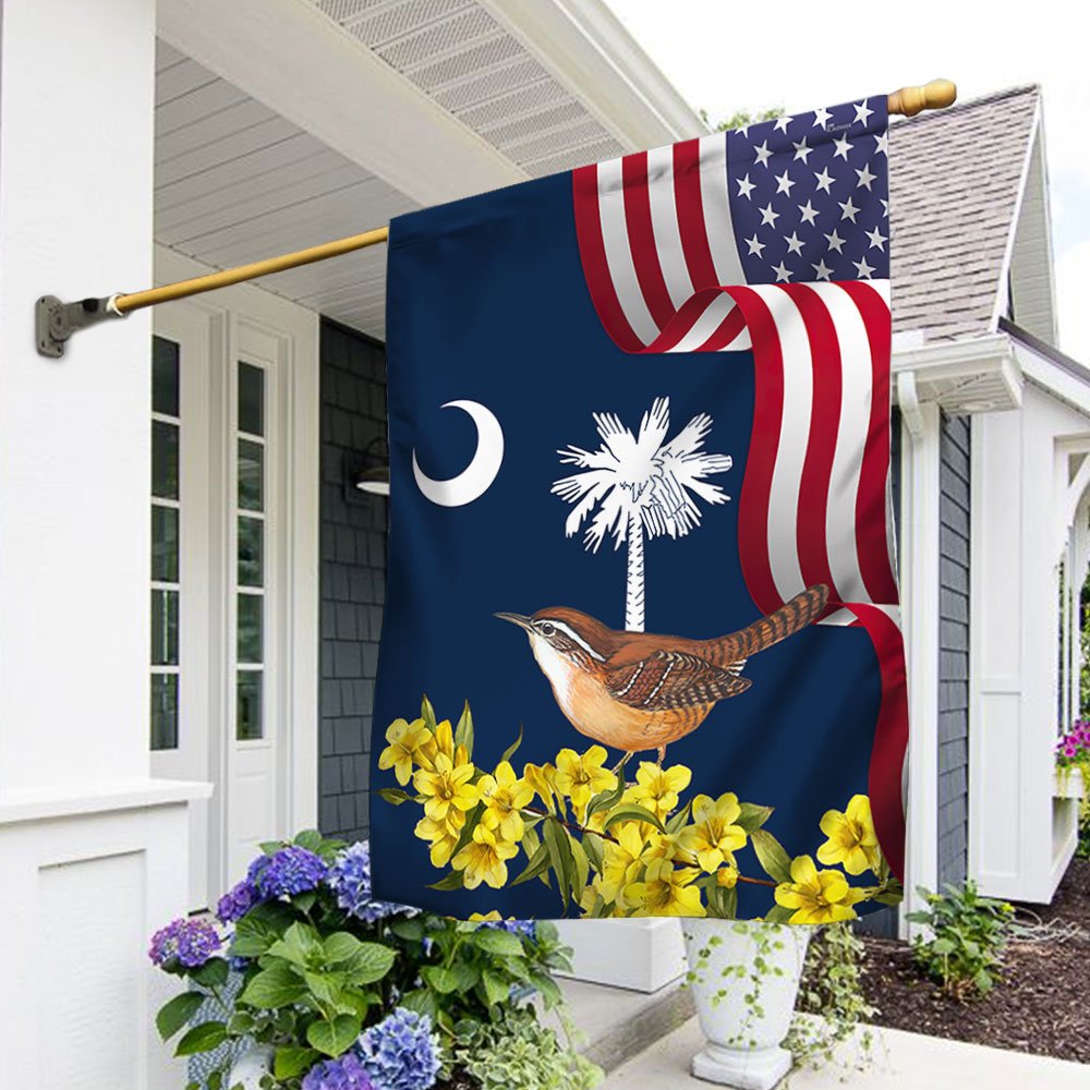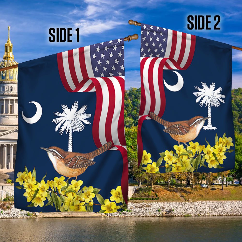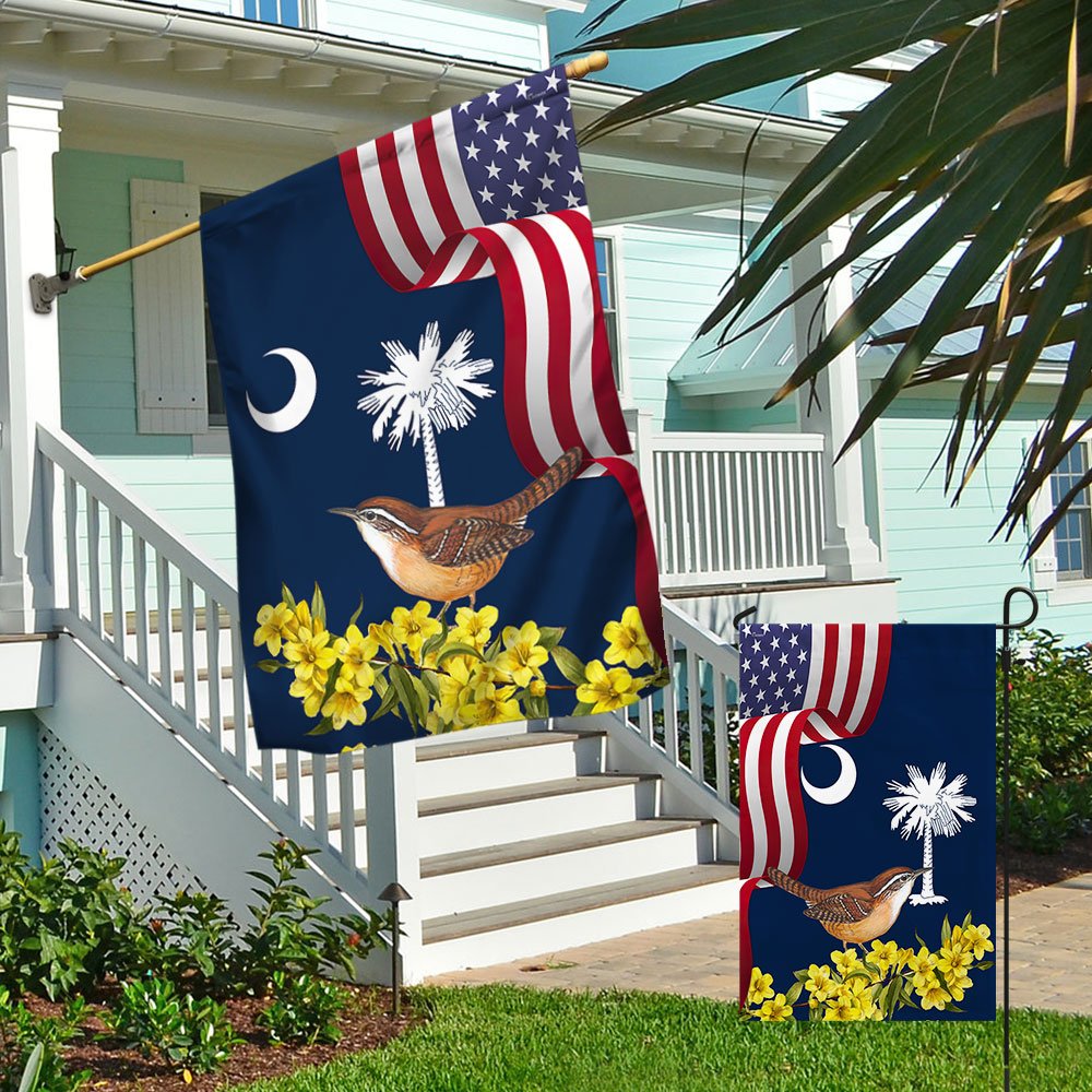 South Carolina Yellow Jessamine Flower and Carolina Wren Bird Flag MLN1141F